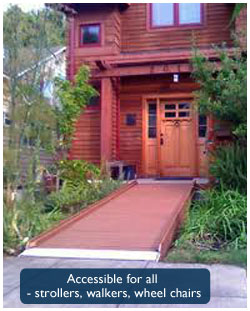Zero Barriers Inc. will work with you to find creative solutions to make both the interior and exterior of your home barrier-free. For the exterior of the home we help with ramps, pathways, decks, garages, garden access and more. Call for more details.